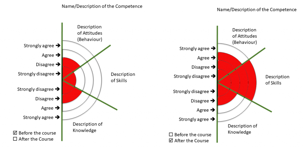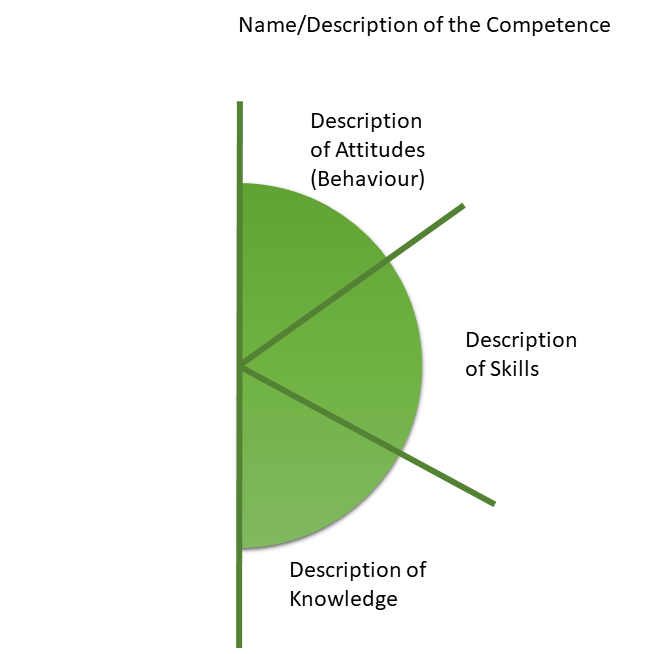 To express the competencies a depiction based on a half-circle was developed and labeled with the three competence items: knowledge, skills, and attitudes. The heading defines the description of the competence.