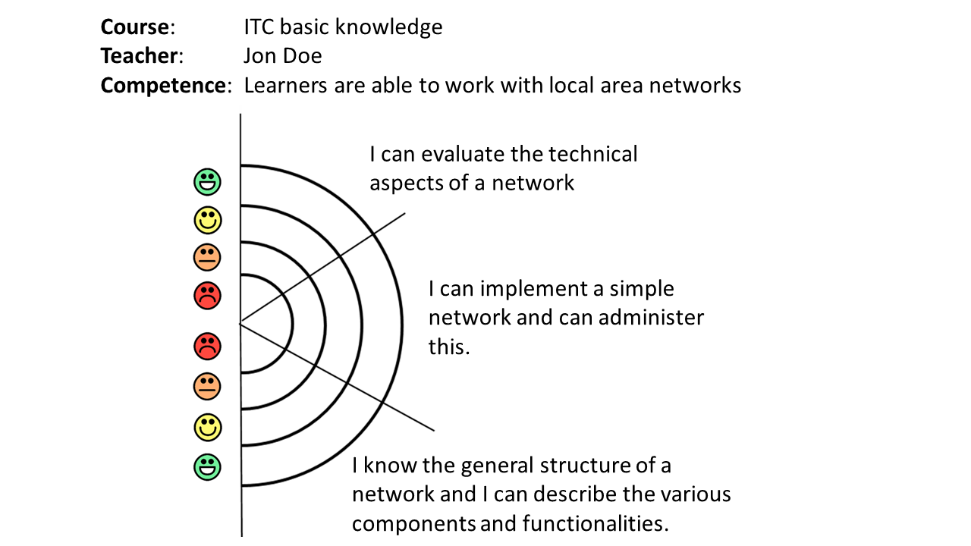 In contrast to the classical levels of Likert-based scale (which uses five levels), the neutral mid-level was dropped. With four levels, each learner must decide on a valuable level from the beginning and cannot decide on the non-committal neutral middle value. To comply with the educational field emoticons have been selected to express the level of agreement.
